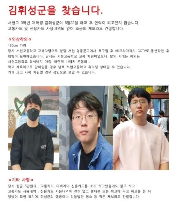 성남 분당 서현고 김휘성군 야산서 숨진채 발견…실종 7일만에.